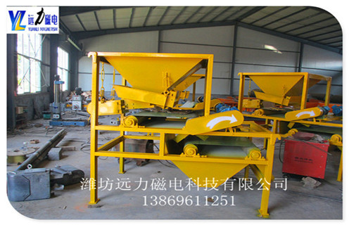 干式磁選機(jī)工作原理及參數(shù),遠(yuǎn)力磁電生產(chǎn)的干式磁選機(jī),所選擇的礦物主要是石英砂,石英砂其實(shí)是一種重要的非金屬礦物,主要是被石英石加工破碎.石英砂的一個(gè)重要應(yīng)用是作為陶瓷體和釉料原料使用,但往往含有赤鐵礦,褐鐵礦,黑云母等雜質(zhì).    1.干式磁選機(jī)的工作原理    石英砂干式高強(qiáng)磁磁選機(jī)可以去除一種鐵雜質(zhì),提高煅燒后石英砂的亮度,以及陶瓷制品的光澤度,從而提高產(chǎn)品的價(jià)值石英砂干式高強(qiáng)度磁選機(jī)使用帶式分選結(jié)構(gòu),在整個(gè)工作區(qū)從進(jìn)料到物料,由帶驅(qū)動(dòng)的材料,物料可以進(jìn)行多次磁力攪拌,同時(shí)起到水沖洗的作用,去除磁性尾礦,帶有磁性將礦物輸送到選板機(jī)的退磁區(qū),使得具有磁性的礦物通過(guò)退磁裝置去除,完成修整過(guò)程,機(jī)器功率小,處理量大,磁場(chǎng)強(qiáng)度高,實(shí)現(xiàn)質(zhì)量好,可以獲得更大的效益.