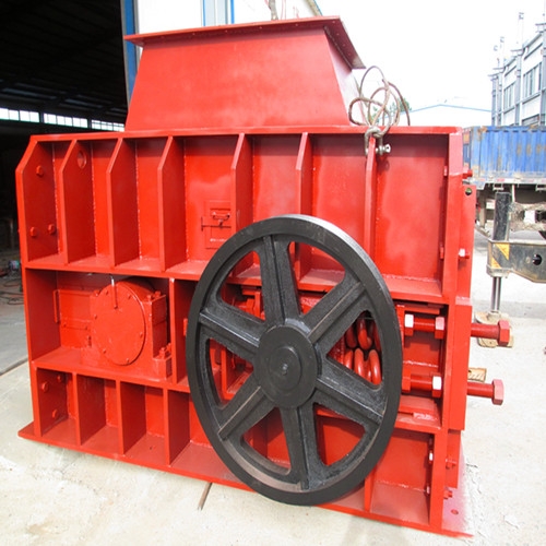 被破碎物料經(jīng)給料口落入兩輥之間依靠摩擦力的作用被帶入輥?zhàn)又g,進(jìn)行擠壓破碎,成品物料自下部落下。